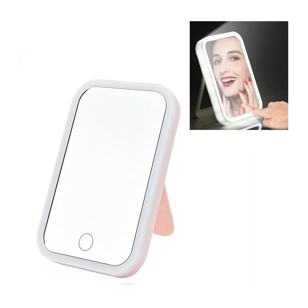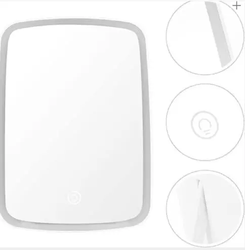 Espejo Maquillaje Iluminado Control Pantalla Táctil LED Espejo Cuadrado Escritorio Brillo Ajustable Espejo Giratorio Vanidad